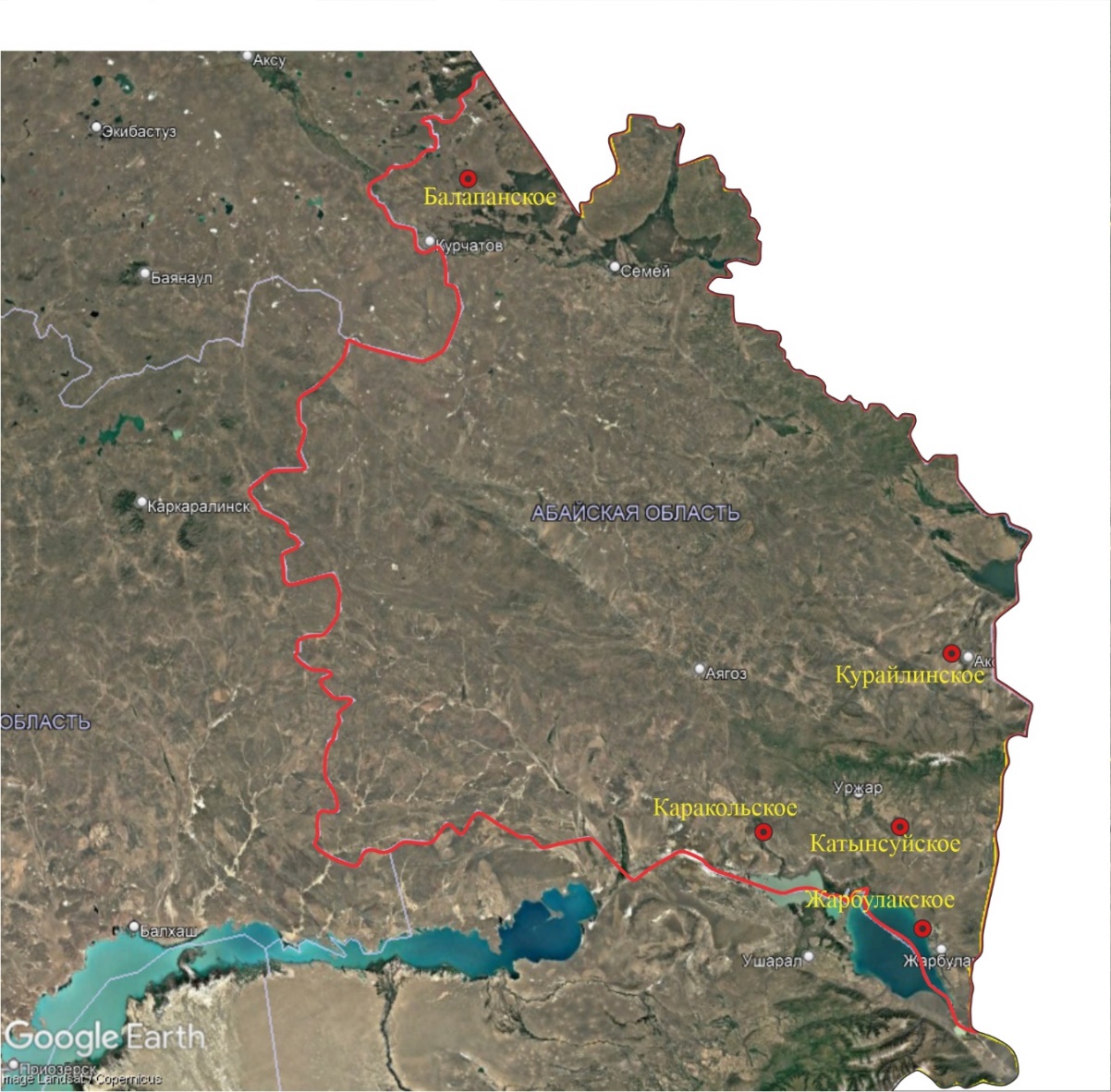 Абай облысының нақты материалы мен сынама алу нүктелерінің картасы