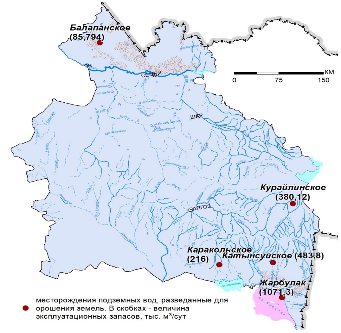 Оңтүстік және Шығыс Қазақстанның 7 әкімшілік облысы, зерттеу аумағының 3 су шаруашылығы бассейні бойынша, жерді суару үшін барланған жерасты суларын пайдалану қорының геоақпараттық жүйесін деректермен толықтыру орындалды.