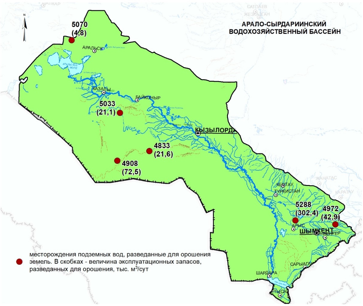 5 өңір, 8 су шаруашылығы бассейні, 17 әкімшілік облыс бойынша тұрақты суармалы егіншілік мақсатында жерді суару үшін барланған Қазақстанның жерасты суларының 115 кен орнының ресурстық әлеуеті бағаланды;