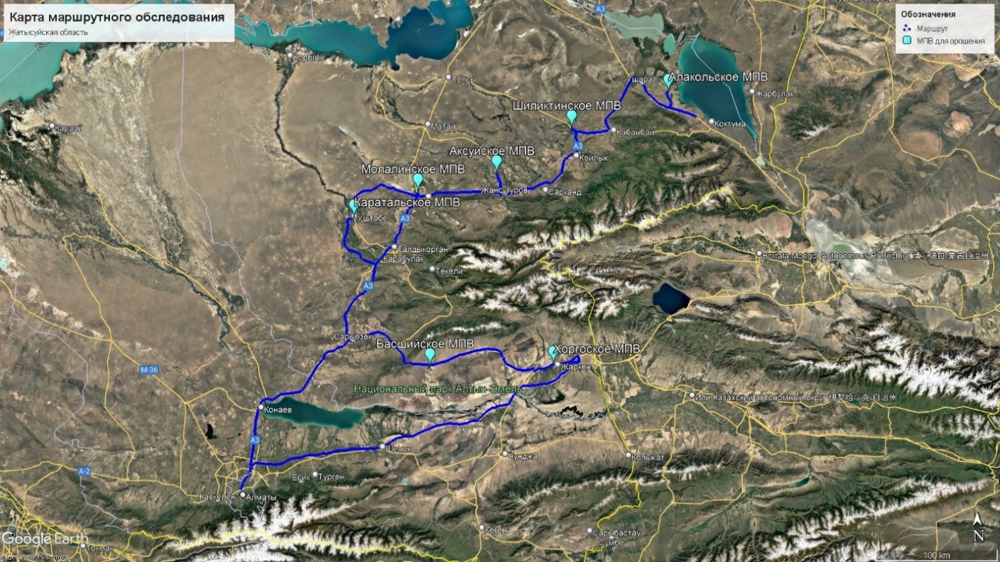 Жетісу облысының нақты материалы мен сынама алу нүктелерінің картасы